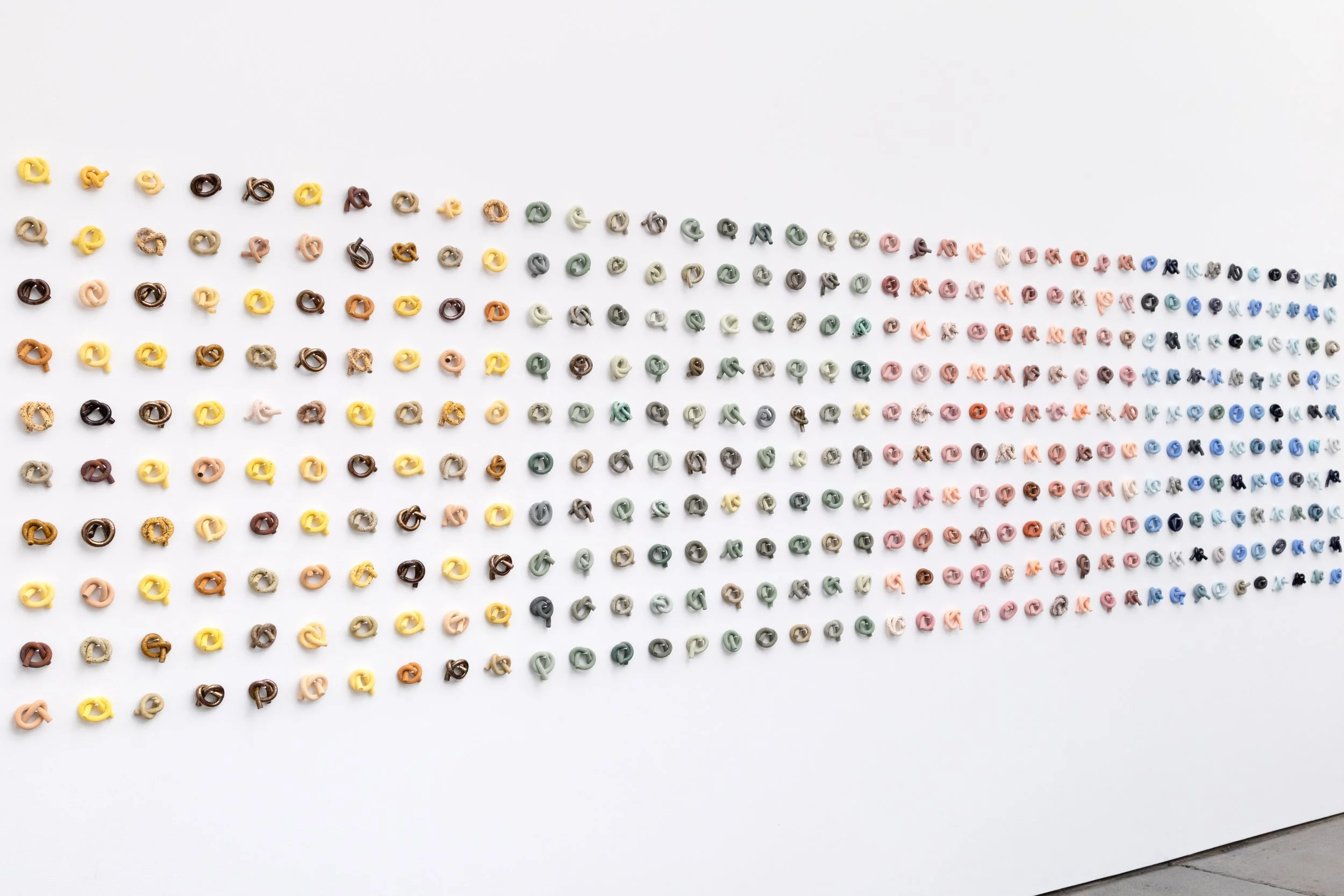 Minaal Lawn creates sculptural ceramic works marked by her materially restrained and colour-driven vocabulary. Her use of repetition transforms the physical act of making into a profound personal ritual. A powerful sense of multiplicity emerges from the accumulation of her small forms, where her ritualised labour questions the industrialised ideal. Fundamental to identity, she draws on a deep visual tradition of object symbolism, Hindu worship culture and the aesthetics of ritual. Creating intimate autobiographical work that invites viewers to recognize the beauty inherent in sustained devotion.
